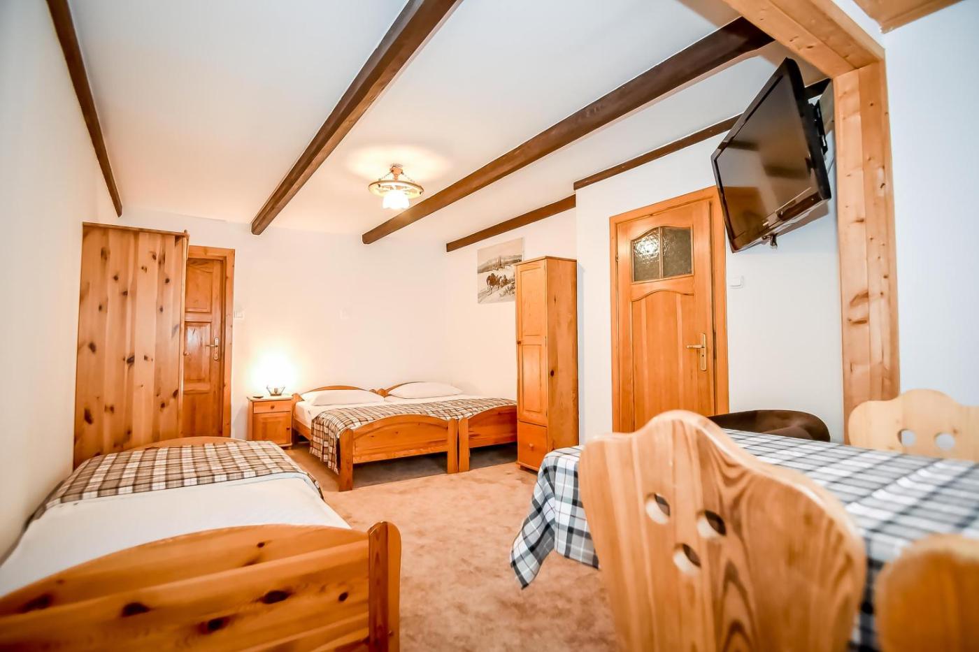 Pokój trzyosobowy z widokiem na góry. The triple room features a tea and coffee maker, a seating area, as well as a private bathroom boasting a shower and a hairdryer. The triple room provides a flat-screen TV, a dining area, a wardrobe, a barbecue as well as mountain views. The unit has 2 beds. Pokój Trzyosobowy - 3 osobowy. Powierzchnia pokoju ok.: 15 mkw. ;