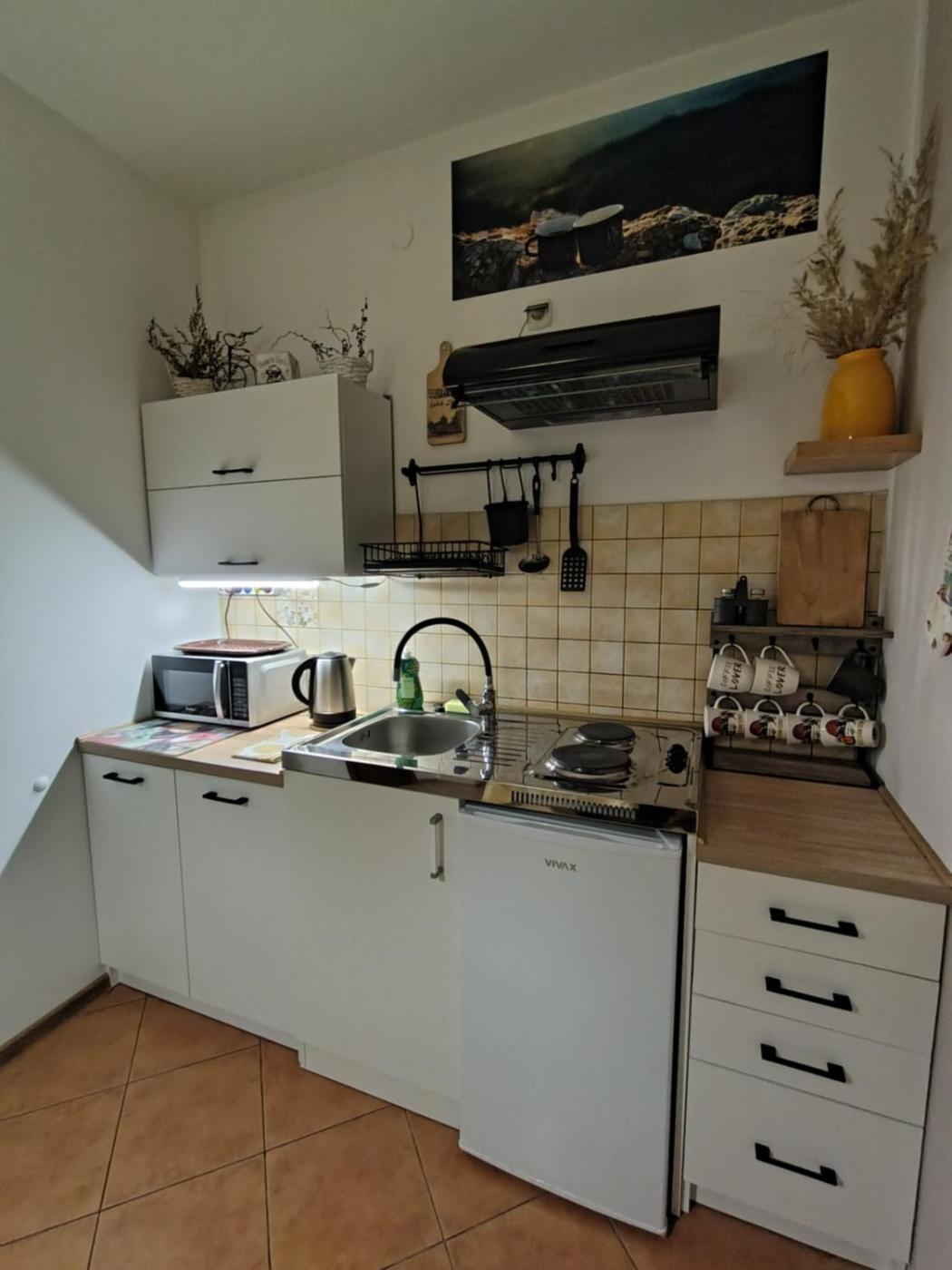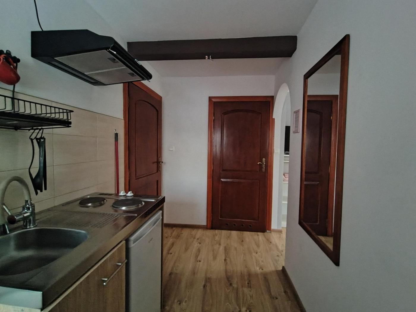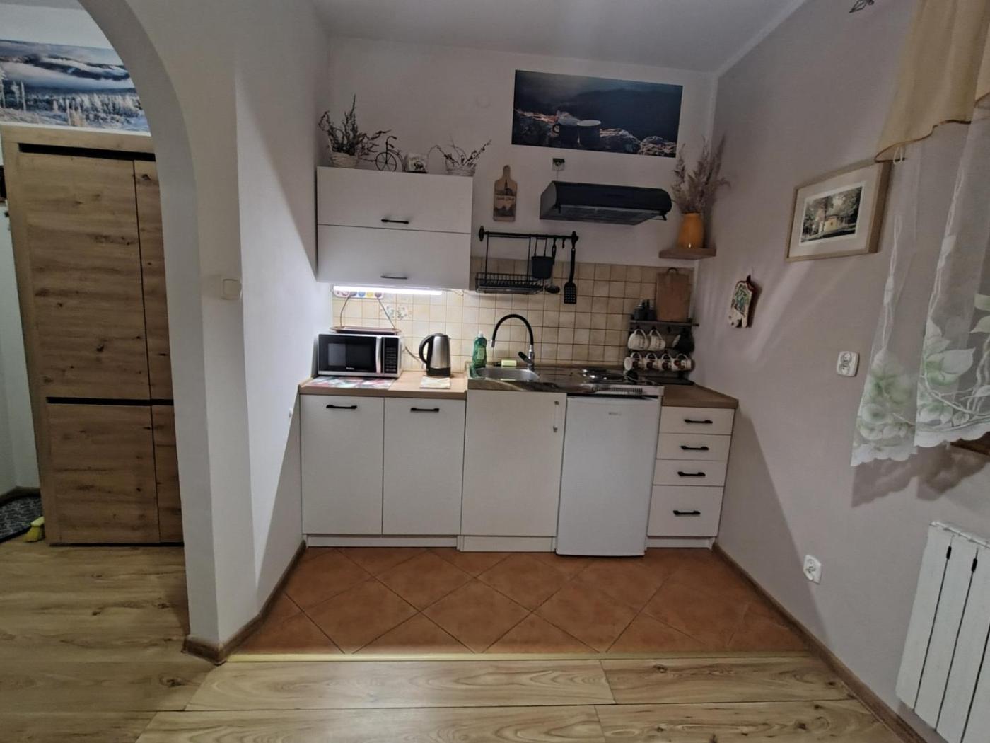 Pokój dwuosobowy. The well-fitted kitchenette features a refrigerator, kitchenware, a microwave and an electric kettle. This double room includes a flat-screen TV with satellite channels, a private bathroom as well as an outdoor dining area. Pokój Dwuosobowy - 2 osobowy. Powierzchnia pokoju ok.: 20 mkw. ;