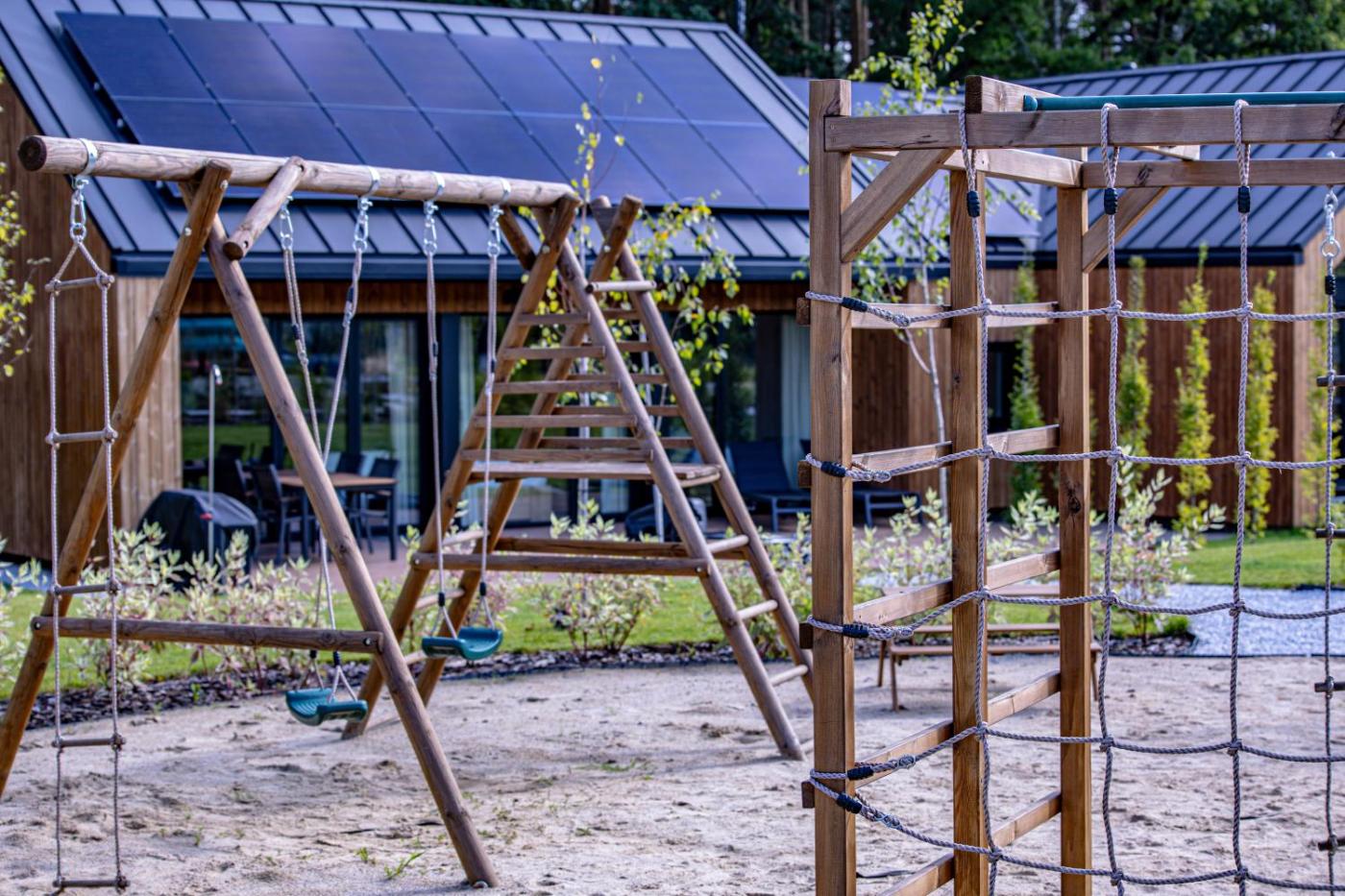 Willa. Ta klimatyzowana willa z prywatnym wejściem mieści salon, 4 oddzielne sypialnie oraz łazienkę z prysznicem i suszarką do włosów. W dobrze wyposażonej kuchni przygotowano płytę kuchenną, lodówkę, zmywarkę do naczyń i przybory kuchenne. Goście mogą korzystać ze sprzętu do grillowania. Ta willa oferuje również pralkę oraz telewizor z płaskim ekranem i dostępem do serwisów streamingowych. Z tarasu roztacza się widok na ogród. W tej opcji zakwaterowania dostępnych jest 5 łóżek. Willa - 8 osobowy. Powierzchnia pokoju ok.: 79 mkw.